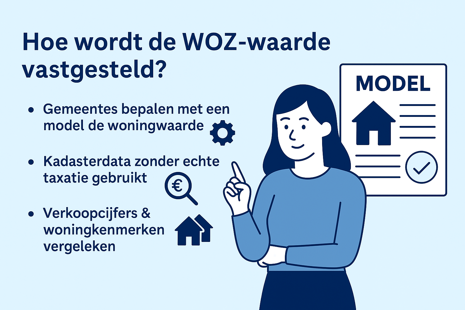 Om voor ieder specifiek huis tot een WOZ-waarde te komen, gebruikt de gemeente een rekenmodel. Hierbij wordt rekening gehouden met de oppervlakte van het huis, de inhoud, verkoopcijfers, de ligging en erfpacht. De nieuwe WOZ waarde wordt jaarlijks geactualiseerd en is binnen enkele uren na bekendmaking zichtbaar in het WOZ-waardeloket.